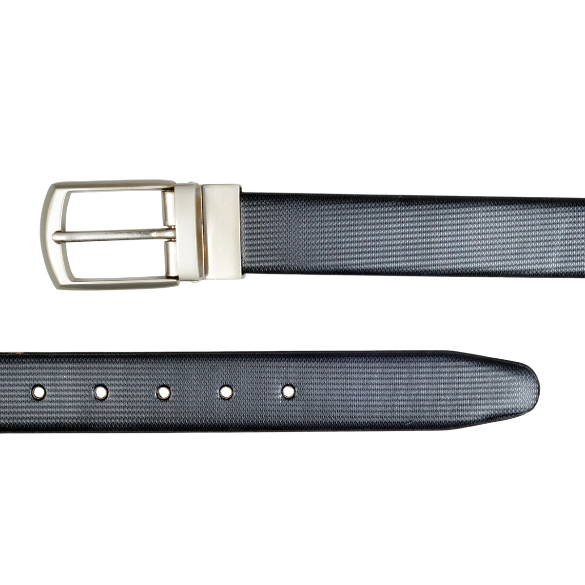 Elevate your formal attire with this sophisticated men’s reversible belt that offers two distinct looks in one. The classic raspberry textured design adds a refined touch to the black faux leather, while the greyish black buckle provides a contemporary finish. Perfect for business wear and formal occasions, this versatile accessory seamlessly transitions from boardroom meetings to evening events. The reversible design doubles your styling options, making it a practical addition to your wardrobe. The sleek buckle mechanism ensures smooth transitions between sides, while the textured pattern adds visual interest and depth to the belt’s appearance. Crafted with attention to detail, this belt combines style with functionality, featuring precisely placed holes for adjustable comfort. Whether paired with tailored trousers or formal suits, this belt maintains its sophisticated appeal while offering excellent value through its dual-sided design.