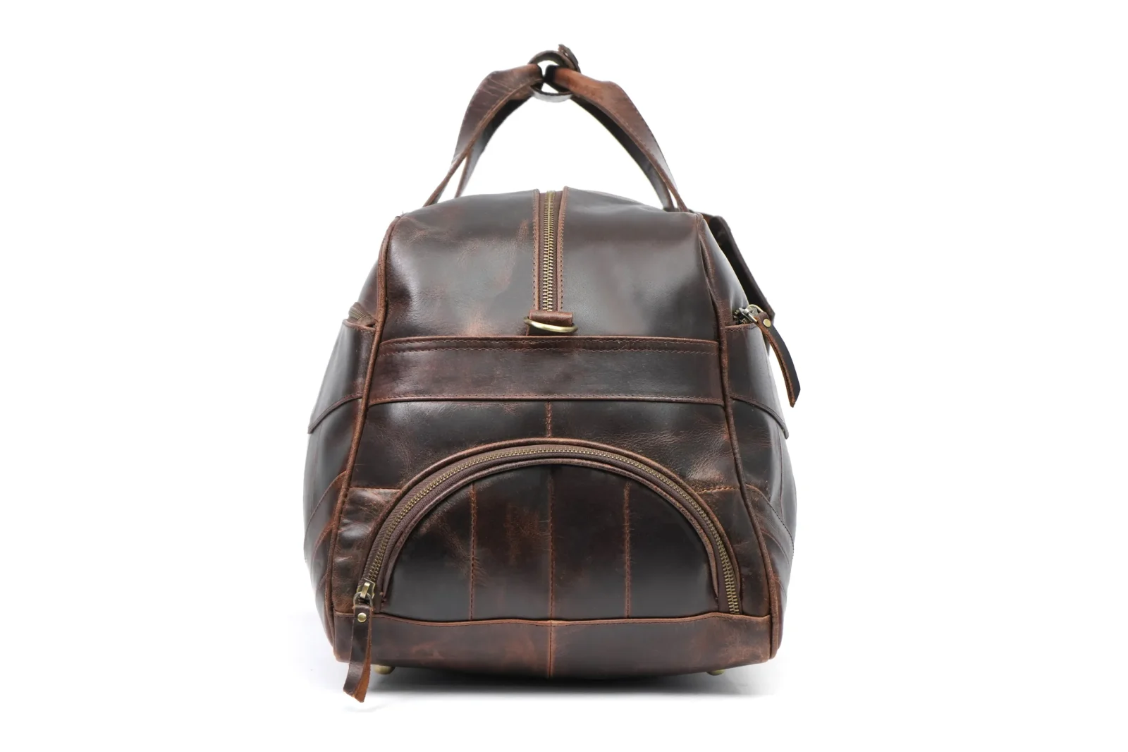 Ideal for weekend trips, gym sessions, or business travels, this stylish travel bag combines practicality with vintage charm. Elevate your travel experience with this spacious and sophisticated leather duffel bag.