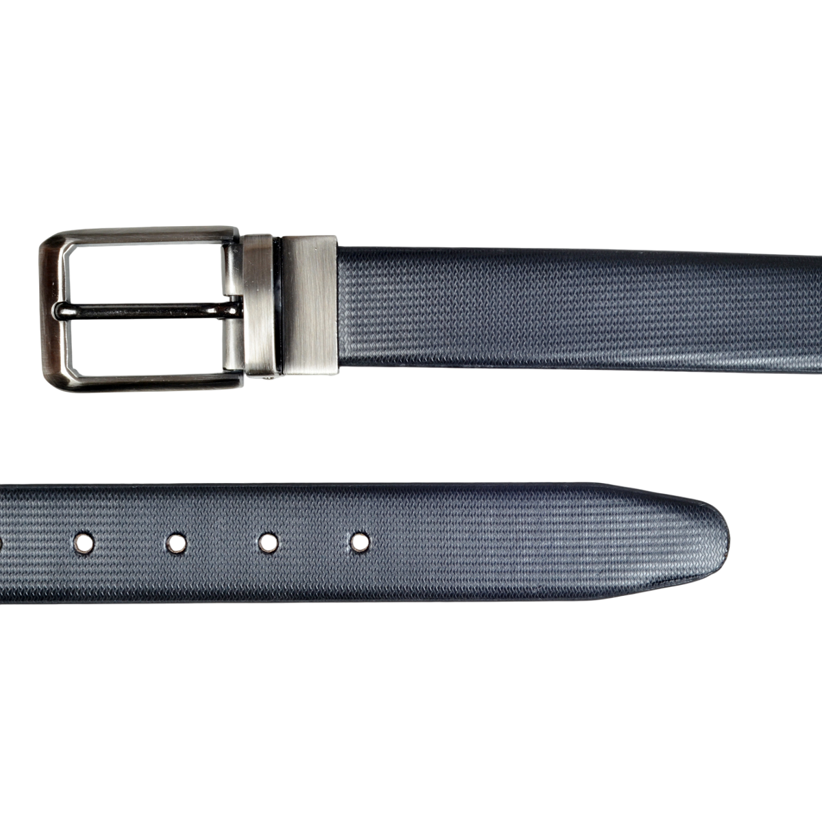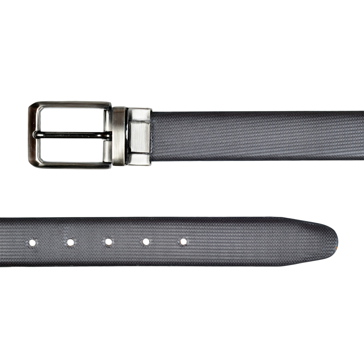 Elevate your formal attire with this sophisticated men’s reversible belt that offers two distinct looks in one. The classic raspberry textured design adds a refined touch to the black faux leather, while the greyish black buckle provides a contemporary finish. Perfect for business wear and formal occasions, this versatile accessory seamlessly transitions from boardroom meetings to evening events. The reversible design doubles your styling options, making it a practical addition to your wardrobe. The sleek buckle mechanism ensures smooth transitions between sides, while the textured pattern adds visual interest and depth to the belt’s appearance. Crafted with attention to detail, this belt combines style with functionality, featuring precisely placed holes for adjustable comfort. Whether paired with tailored trousers or formal suits, this belt maintains its sophisticated appeal while offering excellent value through its dual-sided design.